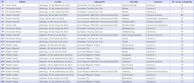 Antes de repasar sus actuaciones a lo largo de 2012 nos gustaría agradecerles a todos, campeones o no, ganadores o no, los buenos y malos momentos vividos juntos, ya sea viéndolos en vivo o por televisión, oyendo la radio, leyendo la prensa… o, lo más habitual, siguiendo sus carreras y sus tiempos por internet.